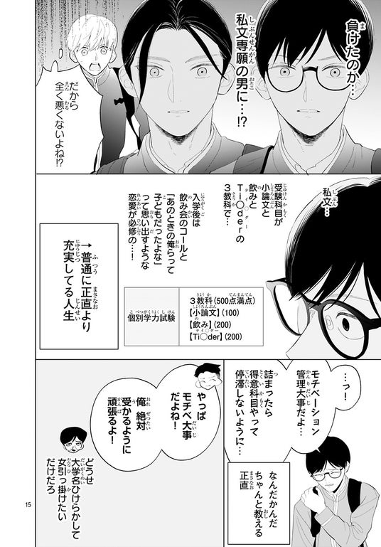 「ジャンプ+」読者の皆さんに楽しんでいただくため、大学受験のネタに加えて「ラブコメあるある」も詰め込んでみました。男女問わず、様々な方に笑っていただけたら嬉しいです。