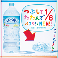 サントリー食品インターナショナル(株)は、ナチュラルミネラルウォーター「サントリー天然水」2Lペットボトルにおいて、飲み終わった空容器が、約1/6サイズまで“小さく、たたみやすい”NEWボトルを開発しました。
