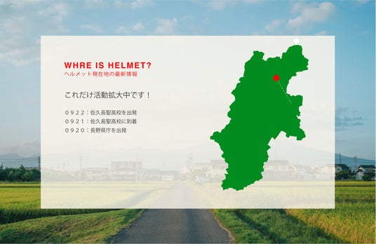 毎日の学校生活と未来を守るためのヘルメットを長野県の生徒たちがリレー形式で繋いでいく参加型のキャンペーンです。ヘルメットには各生徒たちの想いを記したメッセージが貼られ、交通安全への思いや自分が夢中になっていること、頑張っていること、将来の夢、大切な友達へなど、それぞれの生徒の想いが集まったヘルメットとなっていきます。このキャンペーンを通し、そういった思いを守る、自分を守る、大切な人を守るということをキーワードに、高校生をはじめとする多くの県民に交通安全を呼びかけるものとして行われます。また、このヘルメットシェアリレーは、秋の全国交通安全運動出発式を皮切りに9月20日(金)よりスタートし、FREAK’S STORE公式オンラインストア「Daytona Park(デイトナパーク)」内特設ページにて順次更新していきます。特設ページ URL : https://www.daytona-park.com/cp/helmet/?utm_source=pressrelease&utm_medium=Referral&utm_campaign=913_helmetnagano&utm_content=P