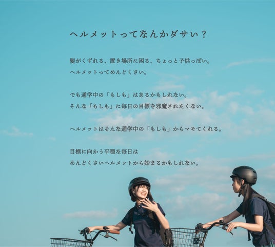 本プロジェクトでは、「通学白書“行きも帰りも青春です”」と高校生の通学にフォーカスしたテーマで、高校生のリアルな学校生活にヘルメット着用を紐づけて、アプローチします。また、このキャッチフレーズをテーマにした、プロモーション動画も制作しました。