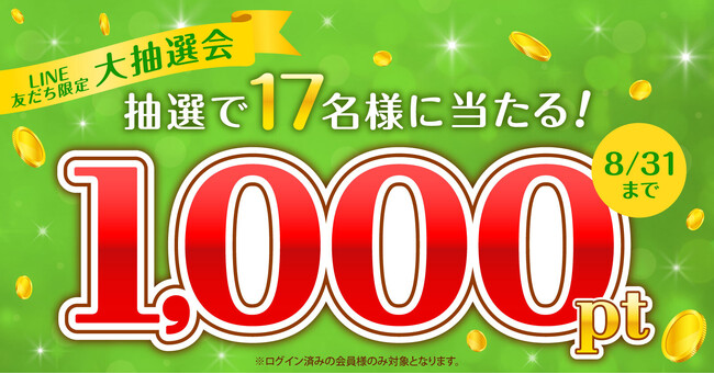 LINE友だち限定で17名様に1,000円相当のポイントが当たる大抽選会を開催!