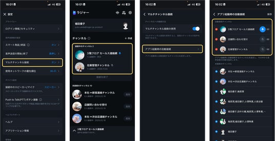 *「アプリ起動時の自動接続」設定を併用することで、業務上よく使うチャンネルをあらかじめ指定し、自動で接続することも可能です。
