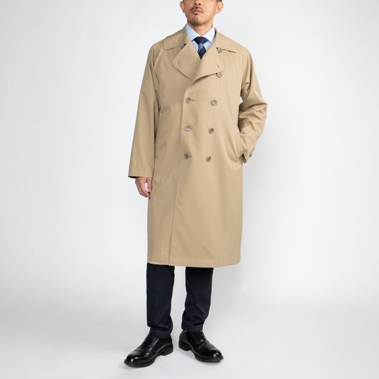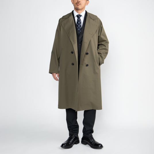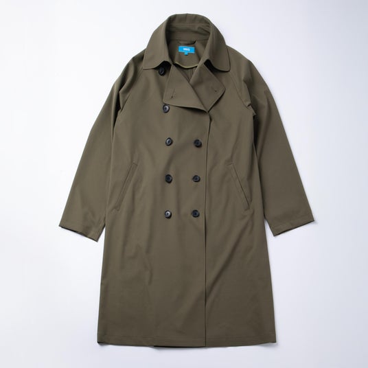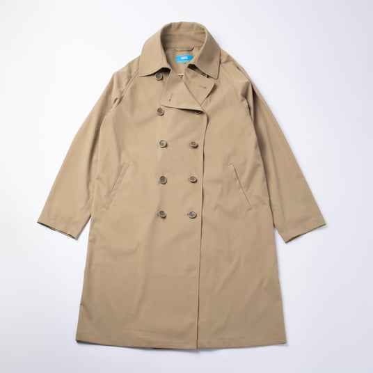 トレンチコートの代表的なディテールであるベルト・エポレット・フラップ・衿ホックをあえて無くし、オンオフともに使いやすい上品でシンプルなデザインに。汚れに強く、撥水・速乾・ストレッチ、シワになりにくく、毎日洗える耐久性と、やわらかくてなめらかな肌触りを実現しました。