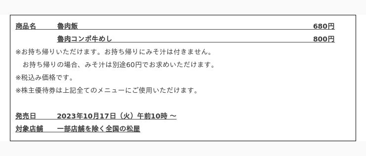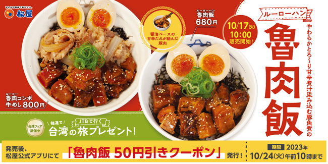 10月17日10時~10月24日10時まで、「魯肉飯」の50円引きモバイルクーポンを「松屋フーズ公式アプリ」にて配信いたします。