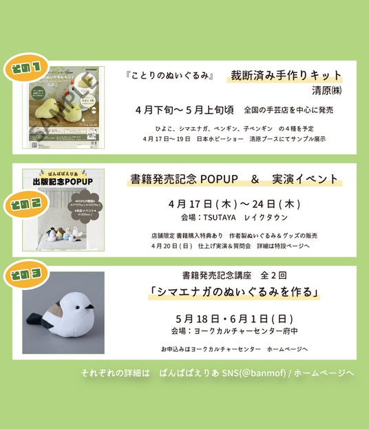 内容:・店舗限定 ・書籍購入特典あり ・作家製ぬいぐるみ ・グッズの発売