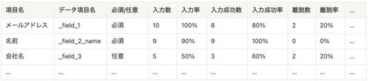 フォームの項目ごとに離脱率が確認可能なため、フォーム内で改善すべき箇所が明確になります。