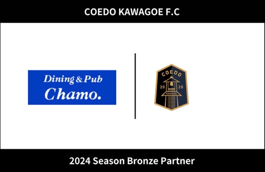 COEDO KAWAGOE F.Cを運営するCOEDO KAWAGOE F.C株式会社(埼玉県川越市、代表取締役 有田和生)は、おしゃれ空間で自慢のカクテルと充実フードメニューが楽しめる川越の隠れ家ダイニングバーを運営するDining&Pub Chamo.(埼玉県川越市、代表 古本翔大 )と2024シーズンのブロンズパートナー契約を締結したことを発表いたします。