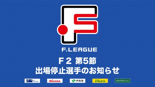 Fリーグ2024-2025 ディビジョン2 第5節の出場停止選手についてお知らせいたします。