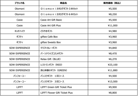 ギフティがセレクトしたブランドオリジナルのカタログギフト16種類の展示および販売(五十音順)