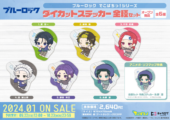 「アニメガ・ソフマップ」にて、「ブルーロック ステッカー[でこぱちっ!]」の全種セットをご予約度に、「特典ステッカー 糸師 凛」をおひとつプレゼント!