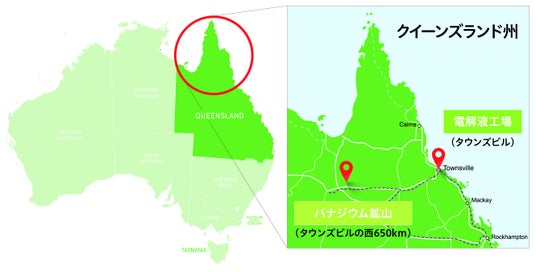 Vecco社は、豪州クイーンズランド州でバナジウム鉱山とVFB用電解液プラントに関するプロジェクト(プロジェクト名:Debella Project、以下「プロジェクト」)を進めています。プロジェクトでは、バナジウムを含む鉱石の採掘・五酸化バナジウムの精製・VFB用のバナジウム電解液の製造を行う地産地消型かつ競争力のあるサプライチェーン構築を目指しています。その一環として、同社は豪州初となる商業規模のバナジウム電解液製造施設(生産能力:約35MWh/年)の稼働を2023年6月に開始しました。今後は、自社鉱山からの五酸化バナジウム精製に向け、2025年前半から豪州内バナジウム鉱山開発に対する詳細FS(Feasibility Study:事業化調査)を開始し、2026年からの採掘施設の建設、および2027年からの操業開始を目指します。将来的には、豪州内で精製した五酸化バナジウムを、豪州だけでなく米国等の電解液工場へ輸送し電解液製造を行うなど、海外への展開も構想しています。