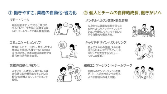 「官庁・自治体向け業務スマート化支援ソリューション」は今後順次ソリューションを拡大します。NECは行政職員の皆様が働きやすさや働きがいを感じ、高いパフォーマンスを発揮できる環境づくりにテクノロジーを活用して貢献してまいります。