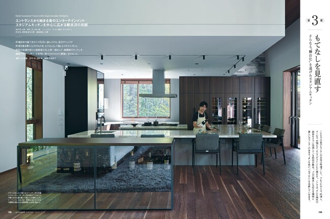 これまでの食のもてなしの主役は料理でした。でもこれからは、料理人、サービス、空間など、すべてがメインになり得ます。ここでは、そんな時代の到来をすでに体現している別荘が舞台。プロの要求にも応える機能と美しいカウンターのあるキッチンを例に、「もてなし」を見直していきます。