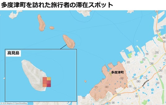 多度津町での滞在箇所を確認すると、高見島での滞在が見られました。高見島は瀬戸内国際芸術祭(※2)の会場となっており、春・夏・秋の3会期のうち秋会期(2025年10月3日~11月9日)に合わせて多数の来訪があったと考えられます。