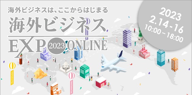 海外ビジネスEXPO2023オンラインは海外ビジネスに関するあらゆる情報・サービスが集まる総合展です。1日で海外ビジネスに関するあらゆる情報が取得でき、普段出会えない海外ビジネスの専門家と繋がれるイベントです。