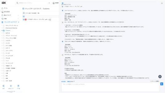 AI孔明(TM) on IDX for Customs デモ画面イメージ