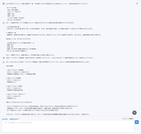 「過去に似た輸入申告の履歴をリストアップして」 など、現場の確認・分類・作成業務を効率化。