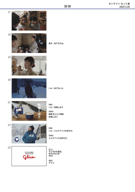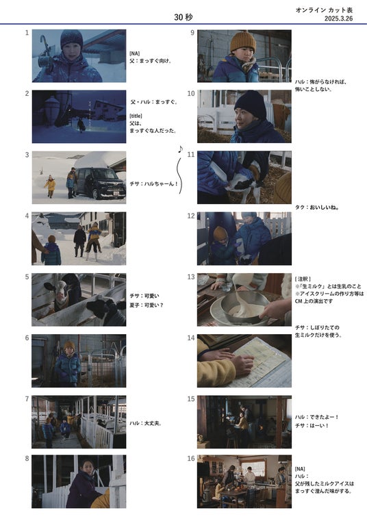 ■牧場しぼり 「生ミルク牧場から~似てきたね~」篇 (30秒)ストーリーボード
