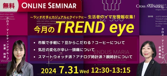 本セミナーでは、「トレンドeye」の人気のあったテーマの記事を取り上げて、結果の概要や今後の兆しについてリサーチャーがお話しします。