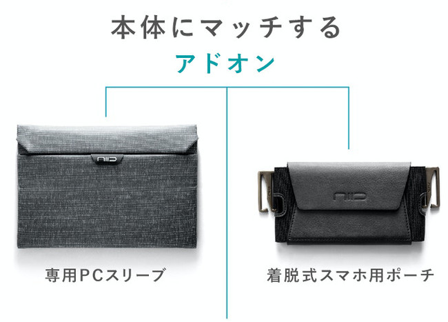 追加のアドオンも豊富に取り揃えており、ストラップに取り付けてスマホやカードを管理できる専用ポーチや出張・旅行に便利なトラベル用品をご用意しています。