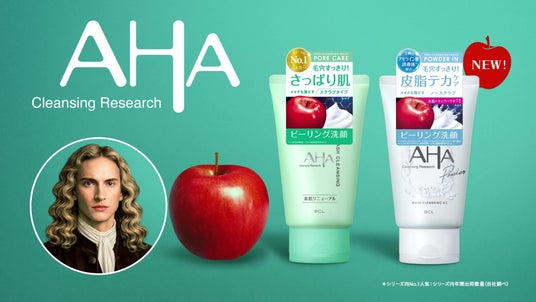 新コピーは「毎日すっきり!ピーリング*¹ 毛穴*²ケアに、リンゴ*³の大発見!」。累計出荷5,000万個*突破のロングセラーブランドが、偉人と共にブランドの世界観を刷新。