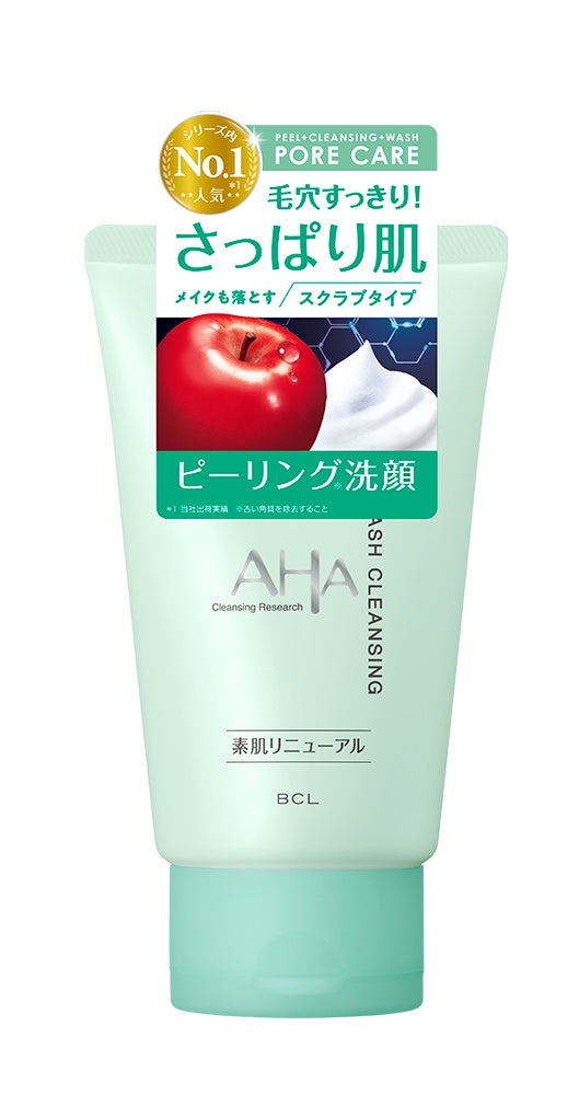 毎日の洗顔ですっきりくすみのない肌にメイクも落とせるAHA*⁴配合の角質ケア洗顔料。毛穴の奥からすっきりと洗い上げる、シリーズNo.1のスクラブタイプ。