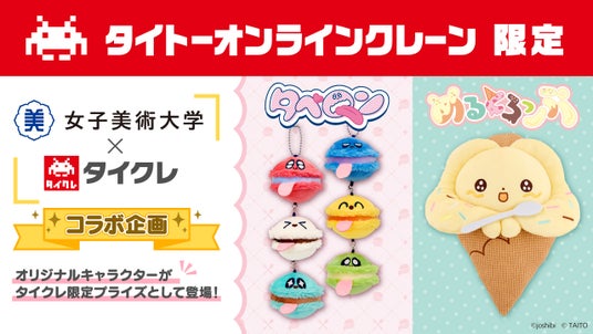 株式会社タイトー(本社:東京都新宿区、以下タイトー)は、女子美術大学(所在地:東京都杉並区)との産学連携企画として、オリジナルキャラクターの共同開発・プライズ化を行いました。現役学生ならではの自由な発想から誕生したキャラクター「めるとろっぷ」と「タベロン」は、おうちでクレーンゲームが楽しめる「タイトーオンラインクレーン(以下、タイクレ)」にて4月25日(金)0時より限定プライズとして展開いたします。