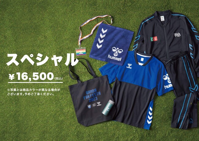 FAN FESTA限定バッグに、チームも着用しているトラックジャージー上下、半袖シャツ、ミニタオル、ヒュンメル100周年ミニボトル、ネックストラップが入ったスペシャルセット。M・L・Oの3サイズをご用意。