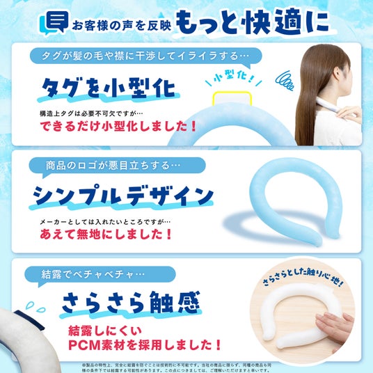 首元ひんやり君(クールネックリング)は、車のエアコンや涼しい室内でも使用でき、28℃以下で自然凍結するため、携帯性に優れ、どこでも手軽に使える暑さ対策グッズとして、さらに多くのユーザーに支持されることが予想されます。