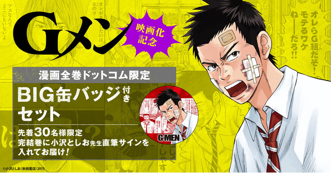 株式会社TORICO(本社:東京都千代田区、代表取締役社長:安藤拓郎)が運営する漫画全巻ドットコムにて、『Gメン』限定BIG缶バッジ付きセットの予約受付を8月18日(金)より開始いたします。