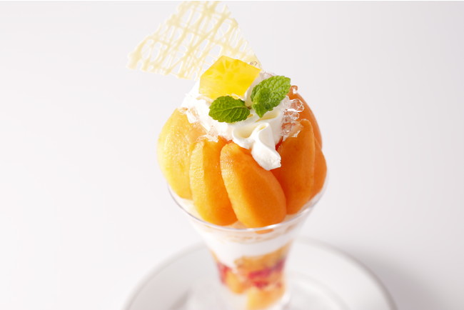 ブランドメロンの生産地、静岡県で大切に育てられら香り豊かな果肉のマスクメロンをデコレーションとして使用し、パフェに仕立てました。