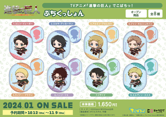 株式会社ディ・テクノ(本社:東京都中央区 代表取締役社長:市原高明)は2023年10月12日(木)より、TVアニメ『進撃の巨人』オリジナルグッズの予約受付を開始いたします。