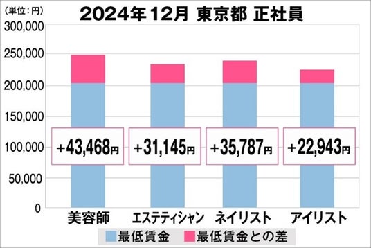 東京都の美容業界における採用時給料に関する調査結果(正社員)2024年12月美プロ調べ