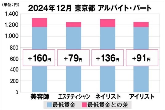 東京都の美容業界における採用時給料に関する調査結果(アルバイト・パート)2024年12月美プロ調べ