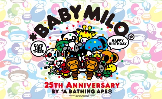 BABY MILO(R)は、1999年にA BATHING APE(R)(以下、BAPE(R))のマスコットキャラクターとして誕生し、今年25周年を迎えます。