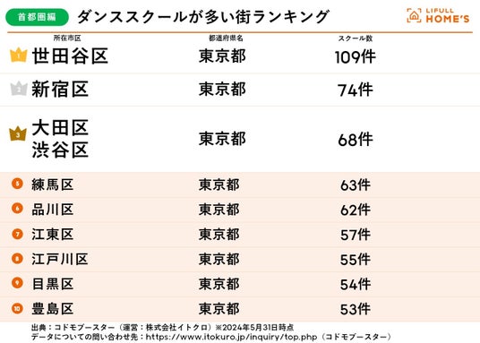 1.国際大会の新種目として話題!「ダンススクールが多い街」1位は、「東京都世田谷区」「大阪市北区」
