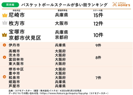 バスケットボールをテーマにしたアニメ映画が2023年に興行収入100億円を超える大ヒット、男子日本代表の48年ぶりの大躍進などで人気急上昇中のバスケットボール。小学生向けではミニバスなど、子どもに習わせたいスポーツの候補としている子育て世代も多いでしょう。そんな「バスケットボールスクールが多い街」の首都圏1位は「東京都八王子市」、関西1位は「兵庫県尼崎市」でした。
