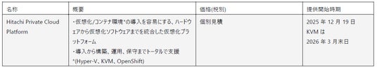 昨今、地政学リスクの高まりなどを背景に、非平常時でも安定してシステムを統制する自律性、すなわちソブリン性と、変化に柔軟に対応する利便性を向上するモダナイズの両立に関心が高まっています。日立は、金融・電力・交通といった社会インフラを長年支えてきた運用経験を通じて、企業のビジネス継続や緊急時対応に不可欠なIT基盤の透明性を確保するノウハウを培ってきました。このノウハウを基にした本サービスにより、企業は事業環境の変化や技術の進化に対応したIT基盤を将来にわたり安定的に運用でき、ビジネス継続と変革を可能とします。具体的には、業務要件で選べるプライベートクラウド、マルチテナントクラウドの利用形態に加え、セキュリティなど必要な対策も含めた多様な選択肢により、自律性と利便性を両立します。また、本サービスの中核となる仮想化/コンテナ環境は、日立独自の高信頼化技術とパートナーとの連携により信頼性と運用性を強化した、Hyper-V、Kernel-based Virtual Machine(以下、KVM)、OpenShift*1の3つを利用でき、日立が環境構築を支援できます。KVMの仮想化環境においては、株式会社NTTデータ(以下、NTTデータ)が提供する仮想化管理ソリューション「Prossione Virtualization(R)」と日立独自のLinux高信頼化技術*2を組み合わせて、2026年3月末日より提供開始予定です。