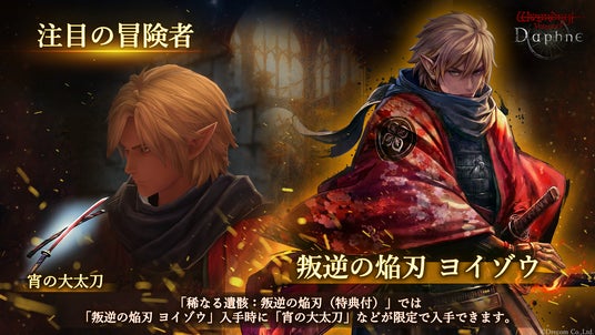 株式会社ドリコム(本社:東京都品川区、代表取締役社長:内藤裕紀、以下ドリコム)は、「Wizardry(ウィザードリィ)」シリーズの3DダンジョンRPG『Wizardry Variants Daphne(ウィザードリィ ヴァリアンツ ダフネ)』において、新たな伝説の冒険者「叛逆の焔刃 ヨイゾウ」の登場と、新クエスト「鬼啼島(おになきじま)の仇討ち」や新たな装備「大太刀」の追加のほか、特別な支給品や期間限定ミッションなど各種キャンペーンを2026年1月29日(木)より実施することをお知らせいたします。