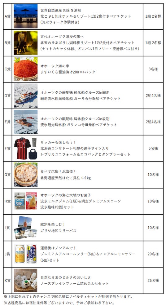 本リリースと合わせ、オホーツクの魅力満載な賞品が抽選であたる利用促進キャンペーンを実施し