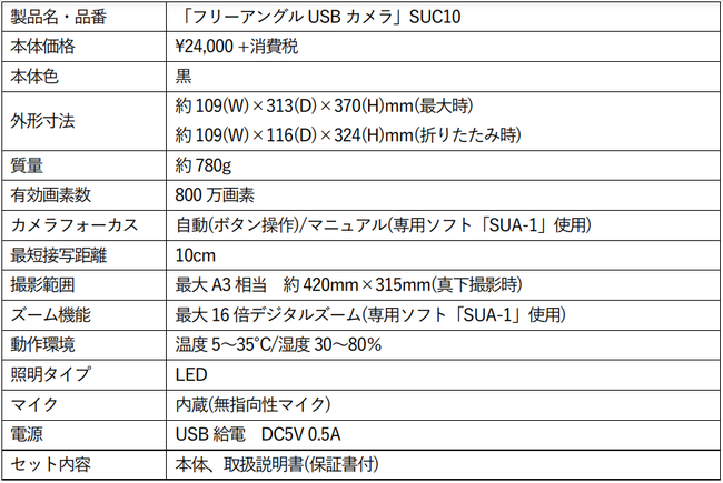 製品名・品番:「フリーアングルUSBカメラ」SUC10