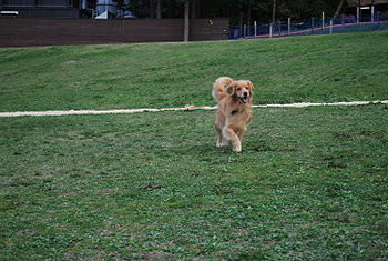 「よ~いドン」でスタートして、30m先のゴールラインをワンちゃんが通過するまでのタイムを競います。