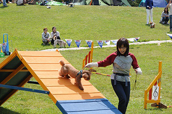 このイベントは毎年、春と秋に開催しており、春開催時には約80頭のワンちゃんとその飼い主が参加した人気のイベントです。フリスビーやおもちゃを持ってくる「持ってきて大会」や数々の障害物をクリアしてポイントを獲得する「ギャンブラー・アジリティ大会」や、ドッグスポーツ初心者対象の「30m走(タイムトライアル)」など、ワンちゃんと飼い主が協力し合って楽しめる内容です。