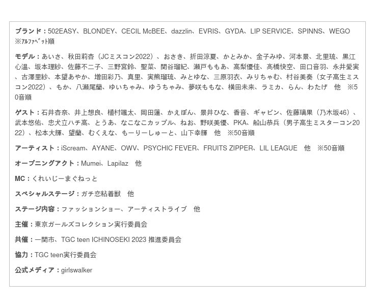 公式サイト :https://tgc.girlswalker.com/teen/ichinoseki/2023/