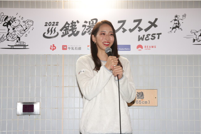 野口さんは「大阪は子どもの頃から大会でよく来ていました。大人から子どもまで、気軽に楽しむことができるのがアーバンスポーツの魅力です!」と語ったほか、お風呂や銭湯での思い出について「スペイン遠征の際、泊まっているホテルに湯船がなかったので、休みの日はお風呂に入るために2時間かけてお隣のアンドラ公国という国まで通っていました!今日も浴場の匂いと温かさに包まれて幸せです。」と、“お風呂愛”を披露。最後に「この機会にぜひ多くの方にアーバンスポーツを楽しんでいただきたい。そして運動の後は銭湯で汗を流し、心も体もリフレッシュしていただければ嬉しいです!」と本プロジェクトへの期待をコメントしました。