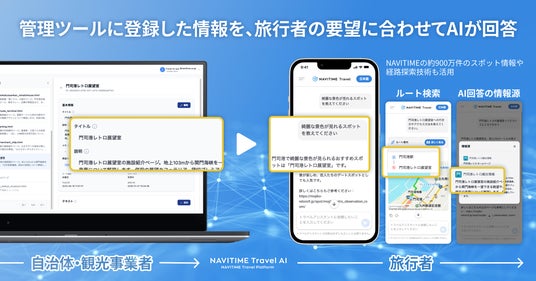 株式会社ナビタイムジャパン(代表取締役社長:大西 啓介、本社:東京都港区)は、2026年2月5日(木)より、生成AIを活用した観光案内ソリューション「地域専用AIアシスタント」を、自治体・DMO・観光事業者などの法人向けに提供開始いたします。