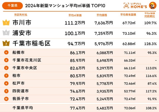 LIFULL HOME'S新築マンション価格2024千葉県TOP10