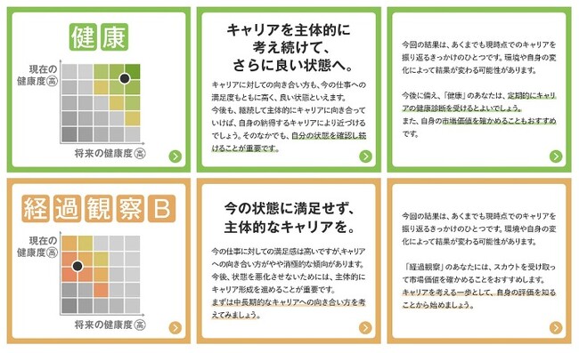 ・キャリアの健康状態が分かるLINEアプリを使用した簡易診断や、「シゴト観診断」の体験