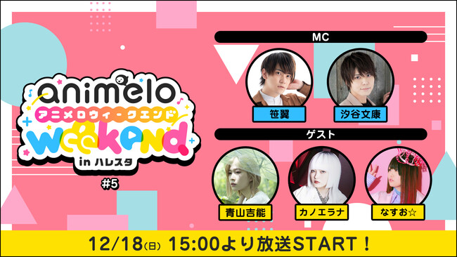 ニコニコ生放送にて、レギュラー放送中のアニソン音楽番組『animelo weekend in ハレスタ』。12月放送回のゲストとして、青山吉能さん、カノエラナさん、なすお☆さんの生出演が決定しました。