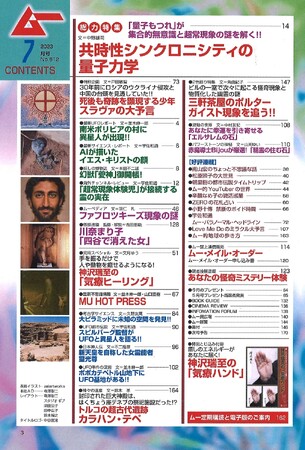 特別企画 死後も奇跡を顕現する少年スラヴァの大予言/大ピラミッドに未知の空間を発見!!/スピルバーグ監督がUFOと異星人を語る!!/実用スペシャル 神沢端至の「気療ヒーリング」/特別とじ込み付録 神沢端至の「気療ハンド」/ポポカテペトル山地下にUFO基地がある!!/トルコの超古代遺跡 カラハン・テペ/ボリビアの異星人事件/ほか